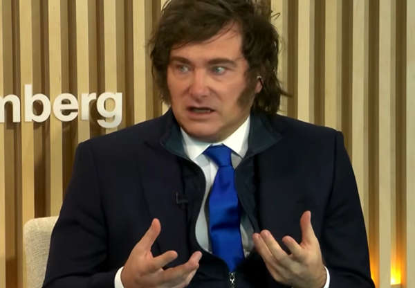 阿根廷总统米莱在瑞士达沃斯世界经济论坛期间接受彭博社采访。 视频截图