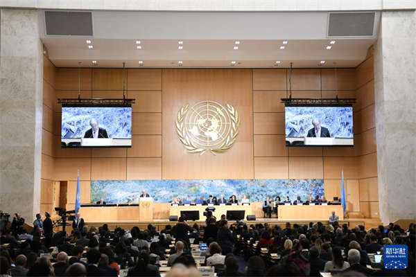 2月23日,在瑞士日内瓦万国宫,联合国秘书长古特雷斯在联合国人权理事会第61届会议上讲话。 新华社记者 连漪 摄