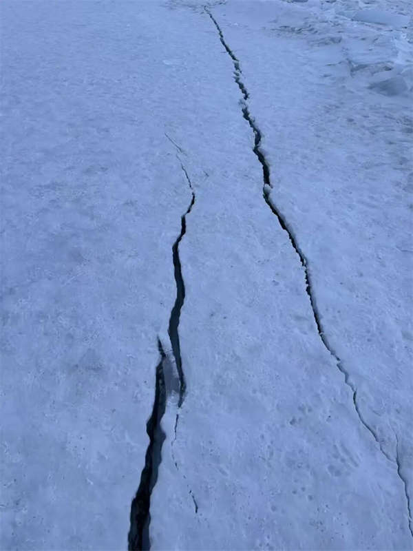 她回忆,下午1时至2时左右,沿途部分冰面厚度尚可,但肉眼可见多道缝隙,“我的同行伙伴曾遭遇冰面突然开裂,裂缝就在身后蔓延,靠对面俄罗斯小哥拉了一把才跳过来”。