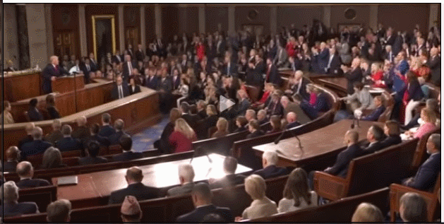 特朗普这话一出口,不出意料,国会大厅立刻分成泾渭分明的两半: