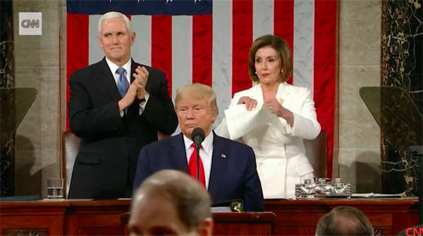 要说特朗普每次国情咨文里掺了多少水分,最有发言权的莫过于他的“老对头”——前众议院议长佩洛西。