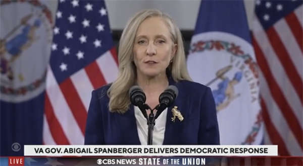 演讲结束后,弗吉尼亚州州长阿比盖尔·斯潘伯格代表民主党发表回应,通篇聚焦抨击特朗普在民生成本问题上的失职。