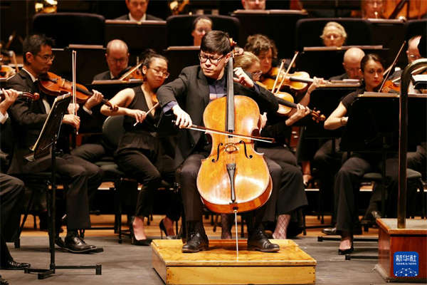 2月21日,在澳大利亚墨尔本艺术中心汉默音乐厅,大提琴演奏家冯勇智在中国新年音乐会上演奏。