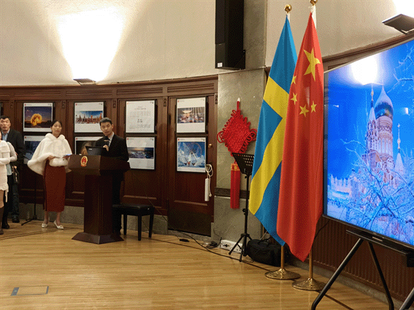 2月10日,“雪韵东方”——中国冰雪之境摄影展在中国驻哥德堡总领事馆开幕。