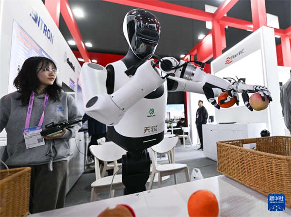 3月3日,在西班牙巴塞罗那举办的世界移动通信大会上,北京人形机器人创新中心推出的人形机器人展示分拣功能。