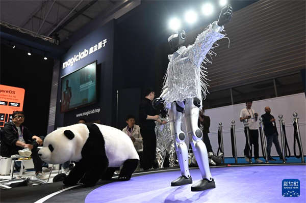 这是3月3日在西班牙巴塞罗那举办的世界移动通信大会上拍摄的魔法原子公司机器人产品。