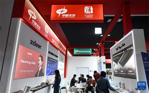 3月3日,在西班牙巴塞罗那举办的世界移动通信大会上,人们参观中国光谷展台。