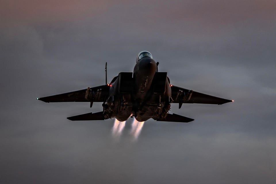 2026年1月18日,一架美国空军F-15E战斗机从中东的一个基地起飞。 福布斯
