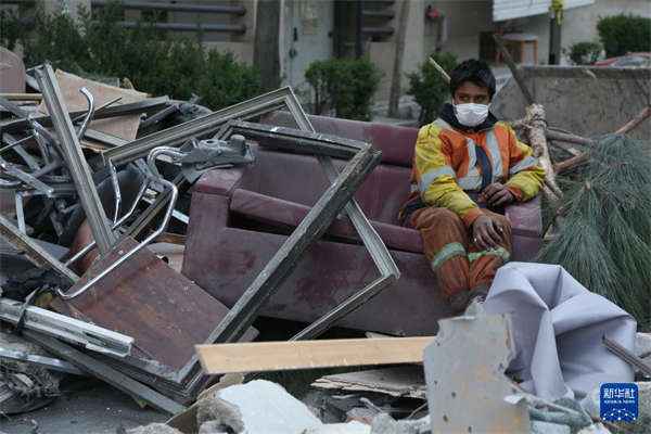 3月12日,在伊朗首都德黑兰东部的一处居民区,一名男子从被毁房屋中搬出物品。