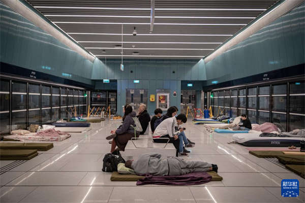 3月26日,在以色列特拉维夫,防空警报响起时,人们在一处具备民防功能的地铁站避难。