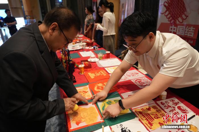图为嘉宾在中国文化展台体验拓印。记者 张兴龙 摄