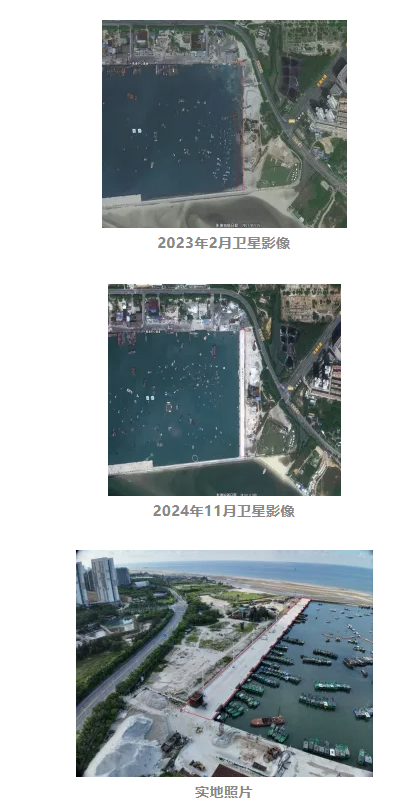2023年10月至2024年8月,广西壮族自治区北海渔业基地管理中心未经批准,在海岸线向海一侧的北海南澫中心渔港港池内非法填海23.09亩,建设广西北海南澫中心渔港升级改造项目(东渔业码头工程)。