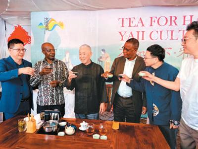 卓武(左一)和中肯友人在肯尼亚国家博物馆参加第九届内罗毕国际文化节“茶和天下·雅集”活动。本版图片除署名外,均为受访者提供