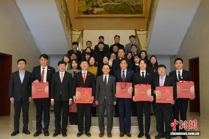 1月30日,中国驻韩国大使馆举行“新春暖心包”发放仪式。图为活动合影。中新网记者 刘旭 摄