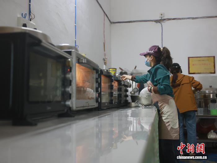 图为姐妹花在制作糕点。汤晓逵 摄