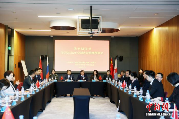 中新网莫斯科3月25日电 (记者 田冰)俄罗斯中国和平统一促进会暨俄罗斯华侨华人联合总会25日在莫斯科举办俄罗斯侨界学习2026年全国两会精神座谈会。中国驻俄罗斯大使馆公使张伟、领事侨务处公参刘伟等与会。俄罗斯主要侨团负责人、旅俄侨胞及留学生代表等40余位嘉宾齐聚一堂,共同学习领会全国两会精神的核心要义,凝聚奋进新征程的思想共识。
