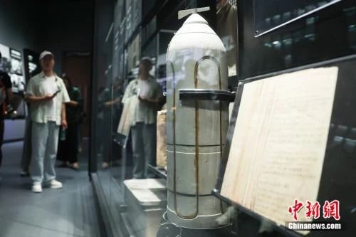 7⽉7⽇,《为了⺠族解放与世界和平》主题展览在位于北京的中国⼈⺠抗⽇战争纪念馆开幕。图为侵华⽇军第731部队使⽤的陶瓷细菌炸弹。 中新社记者 蒋启明 摄