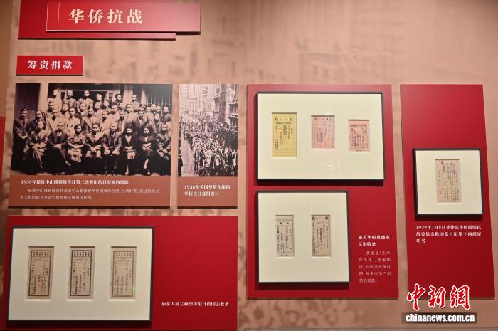 图为华侨抗战的历史照片、义捐收条等。中新社记者 陈楚红 摄