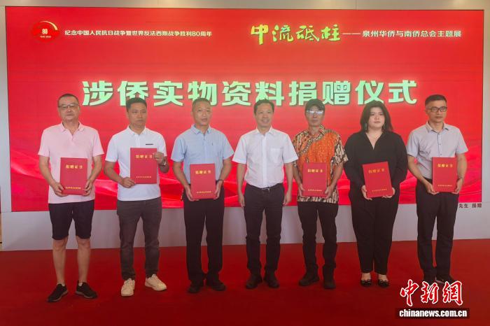 中新网泉州9月2日电 (记者 孙虹)华侨抗战主题展览《中流砥柱——泉州华侨与南侨总会》2日在福建泉州华侨历史博物馆开幕。多名爱心人士于此间向该馆捐赠涉侨实物资料。