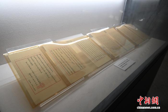 图为展览展出1940年八路军参谋长叶剑英、驻粤港代表廖承志向捐赠抗日物资的纽约华侨衣馆联合会致送的信函。中新社记者 陈楚红 摄