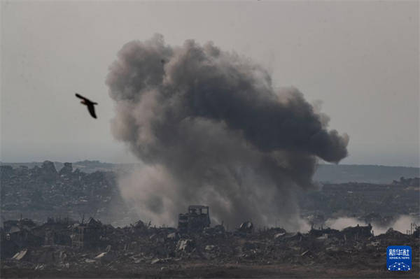 这是7月10日从加沙边境以色列一侧拍摄的加沙地带遭空袭后升起浓烟。新华社发(吉尔·科恩·马根摄)