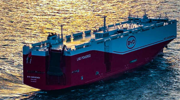 去年4月,比亚迪第四艘滚装船“BYD SHENZHEN”启航 比亚迪官网