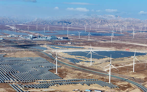 2026年1月5日,宁夏一处“沙戈荒”清洁能源发电站,风机和光伏板交相辉映。 IC Photo