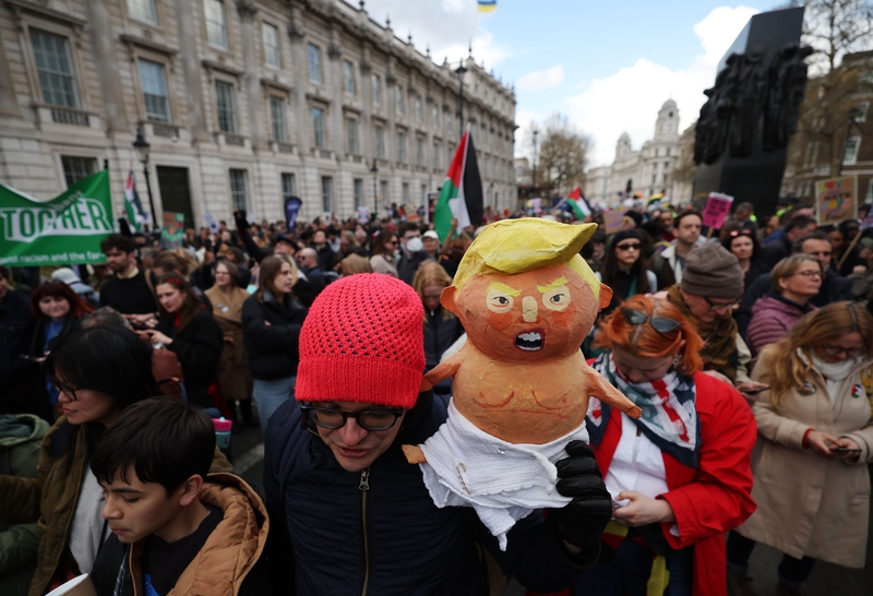 2026年3月28日,英国伦敦,数万民众在市中心举行“共同抵制极右翼”示威游行,抗议极右翼势力抬头。 IC Photo