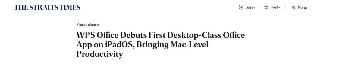 新加坡《海峡时报》评论成,WPS for Pad填补iPadOS生态生产力空白,让iPad从“内容消费设备”变成真正的生产力引擎。