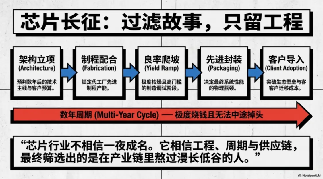 一颗芯片从立项到量产,往往要经历数年周期。架构能不能成立,制程能不能配合,良率能不能爬坡,封装能不能承接,客户能不能导入,供应链能不能稳定,每一个环节都可能决定最终成败。