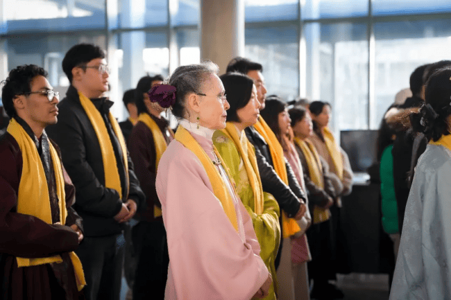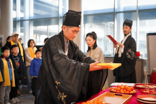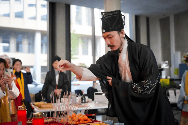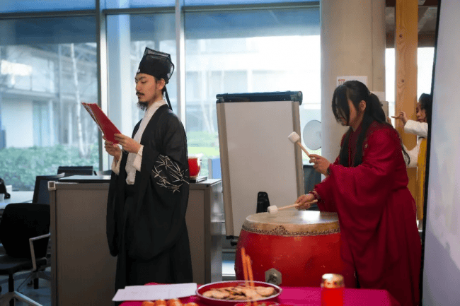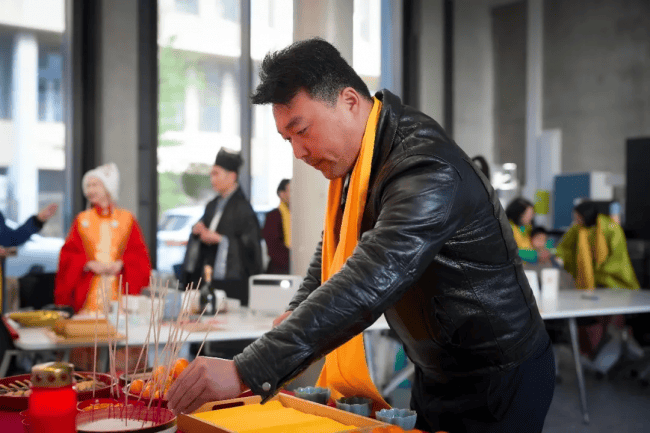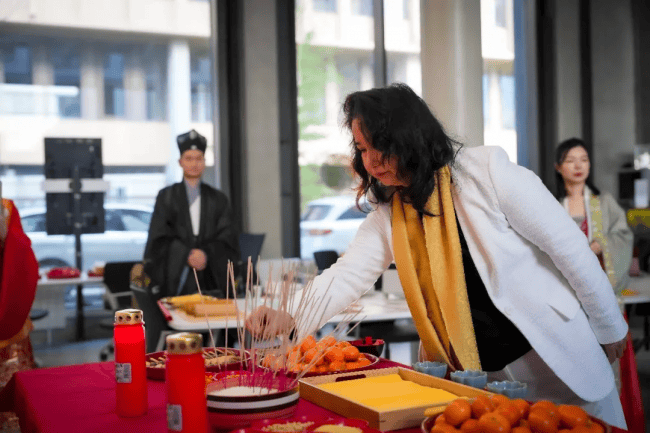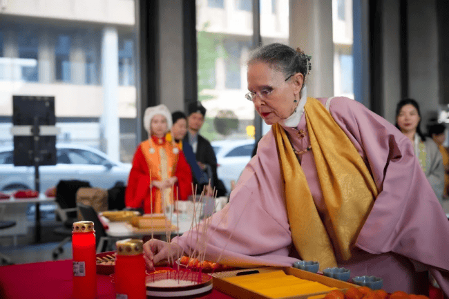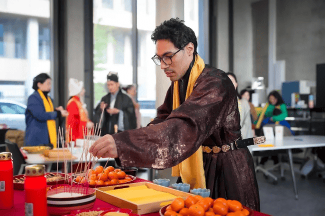 上午10:30,拜祖仪式正式拉开帷幕。身着中华传统服饰的主祭人员带领现场所有同胞,有序完成祭拜仪式。尽管拜祖仪式因地制宜经过适当简化,但每一个环节都庄重肃穆,现场同胞全程静默、有序,以最诚挚之心缅怀始祖、致敬根脉,在异国他乡共同感受中华传统文化的厚重与力量。