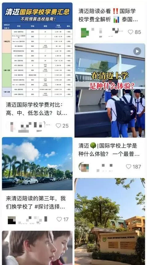 打开一些社媒平台,搜索“泰国留学”,铺天盖地都是中介的广告——“15万一年读顶尖国际学校”“逃离内卷,给孩子一个快乐童年”“清迈国际学校,性价比之王”……
