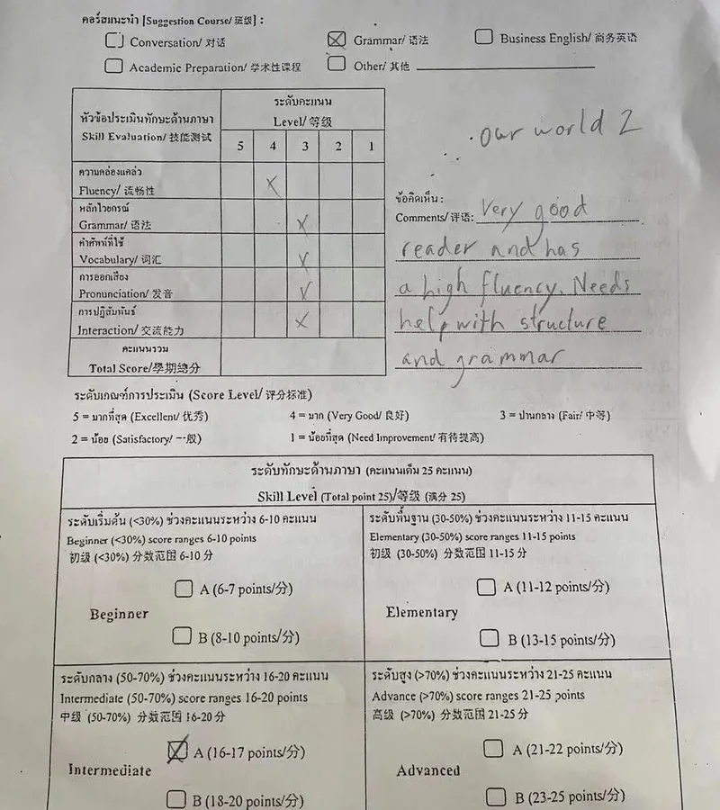 而女儿的泰语除了“萨瓦迪卡”和一些点餐用语,别的基本不会。让老方最头疼的是,孩子的母语中文却开始退化。他让女儿写一篇300字的小作文,孩子憋了半天,写出来的句子完全不通顺,还错别字连篇。