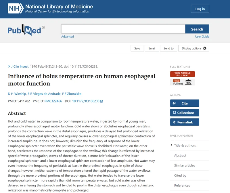 美国国立卫生研究院(NIH)一项研究还发现,冷水可能会影响食道的蠕动功能,也就是将食物送入胃部的过程,从而让消化速度变慢。同时,冷水还可能延迟胃排空,让食物停留时间更长。