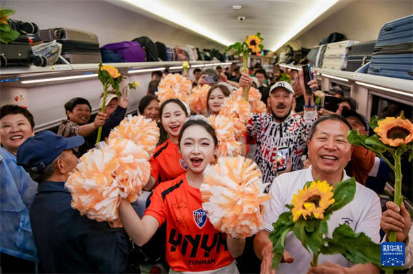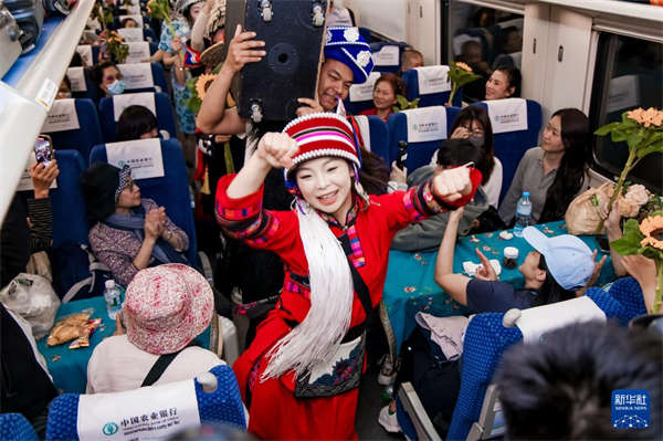 当天,从昆明驶向万象的D87次列车和从万象驶向昆明的D88次列车化身“移动舞台”,来自中老两国艺术团体与各界代表在列车上共迎新春、共叙友谊。活动精心安排文艺展演、民俗体验、故事分享等50余个环节,完成了一场跨越山河、联结人心的双向奔赴。中老两国旅客在跨境客运列车上感受到浓浓的春节味道。