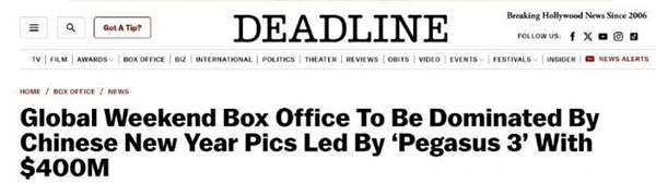 春节假期,各地观影需求旺盛,春节档票房持续攀升。美国好莱坞行业媒体“Deadline”日前的一篇报道预测,由于中国春节档大幕的开启,本周末全球票房最高的电影将会来自中国。