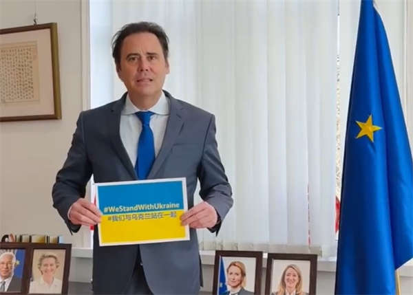 欧盟驻华大使庹尧诲 乌克兰驻华大使馆微博视频截图