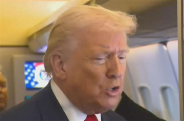 特朗普在专机空军一号上接受记者提问 视频截图