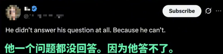 网友评论说:华尔兹的回答与这个青年的问题有直接关系吗?关于“房租”、“睡眠”等问题他一个都没有回答,反而嘴里都是战略、联盟等词汇。其实他对这些问题一个都回答不了。