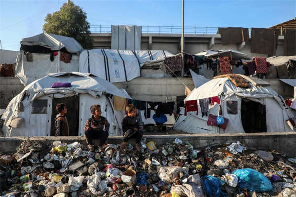 这是2025年12月20日拍摄的暂住在加沙城一处垃圾场附近的巴勒斯坦儿童。新华社发(里泽克·阿卜杜勒贾瓦德摄)