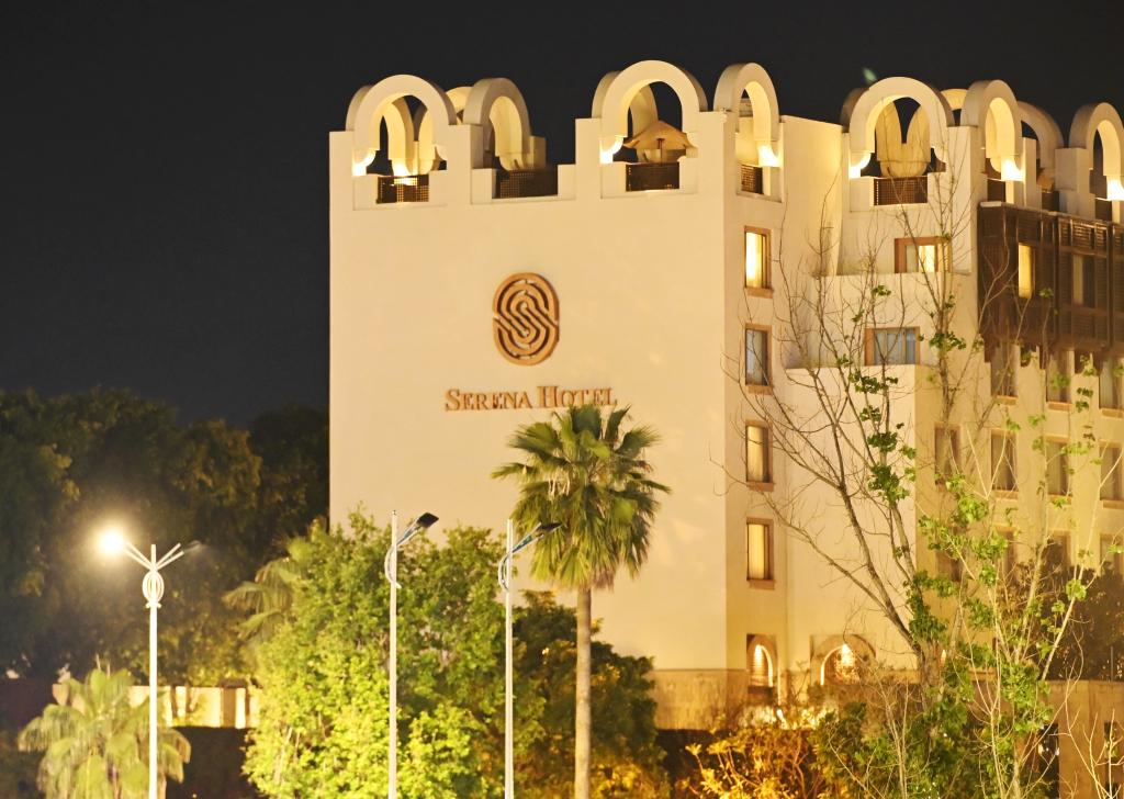 这是4月11日晚在巴基斯坦首都伊斯兰堡拍摄的塞雷纳酒店外景。新华社发(王申摄)