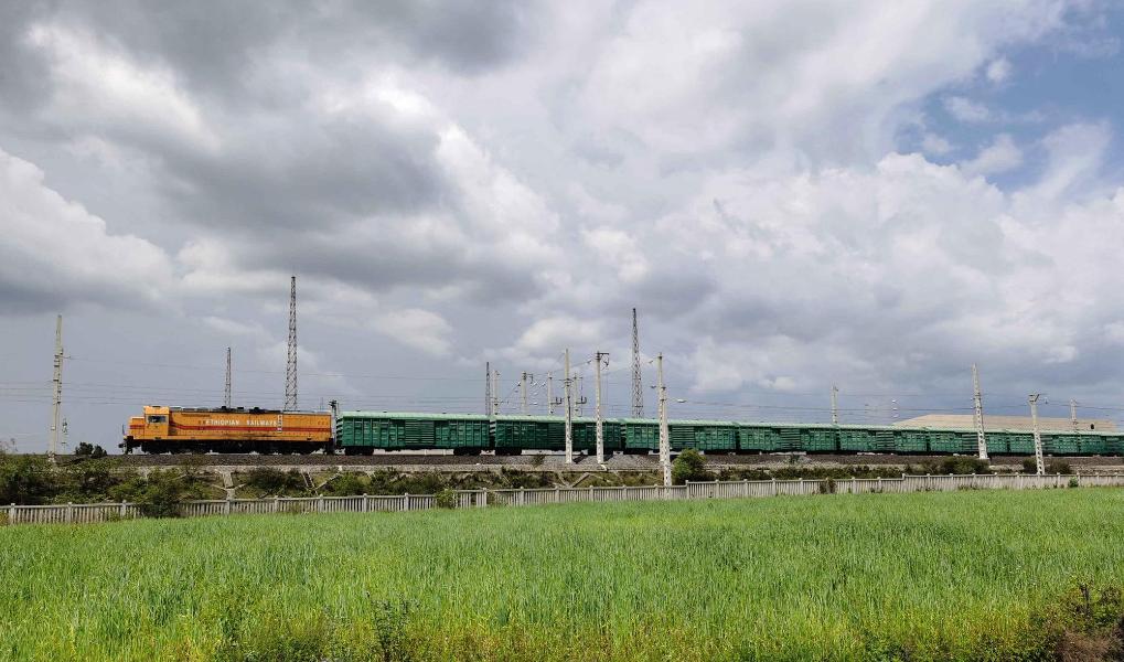 2020年8月31日,从吉布提进口的物资通过亚吉铁路到达埃塞俄比亚英多得货场。新华社发(唐勇成摄)