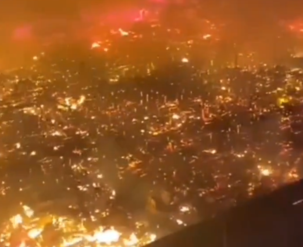 社交媒体上流传的现场视频显示,村庄整片区域几乎被火焰包围,火势极为凶猛。