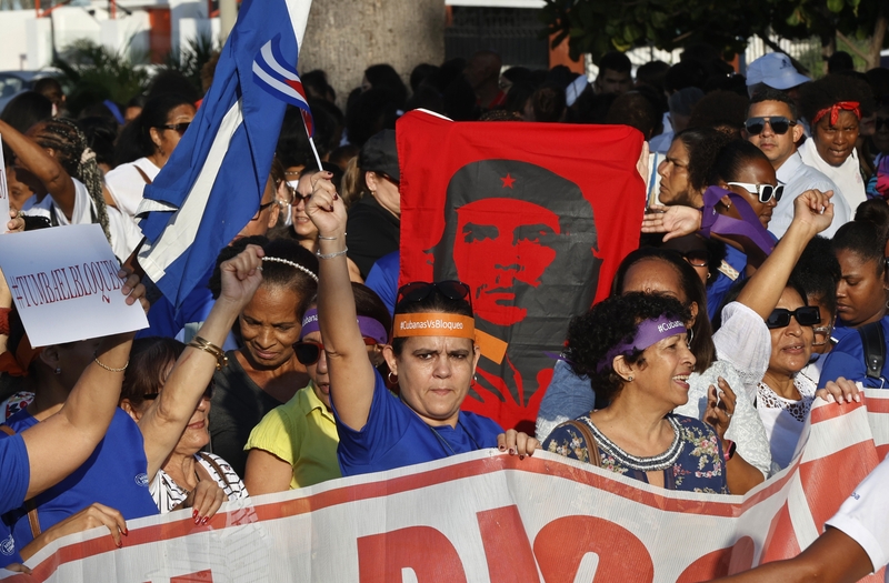 4月7日,古巴哈瓦那,数百名古巴妇女举行集会,谴责美国对古巴长期实施的封锁。 IC Photo