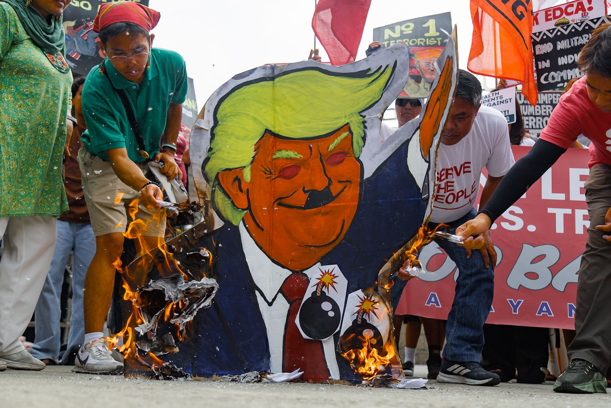 当地时间2026年4月20日,菲律宾马尼拉,进步团体举行抗议活动,谴责在菲律宾举行的“肩并肩”军事演习。 IC photo