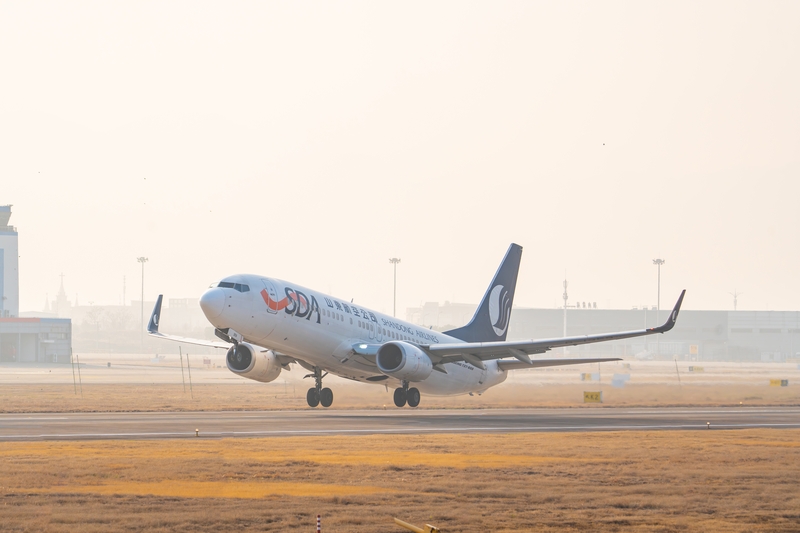 26年2月3日,在宁波栎社国际机场起飞的山东航空波音737-800飞机。 IC Photo