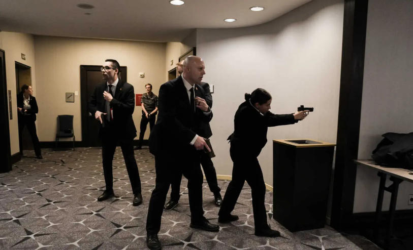 据随行报道总统行程的白宫记者团消息,一名特勤局人员高喊“有枪声”。多名持枪安保人员登上主席台,迅速护送特朗普与第一夫人梅拉尼娅撤离。