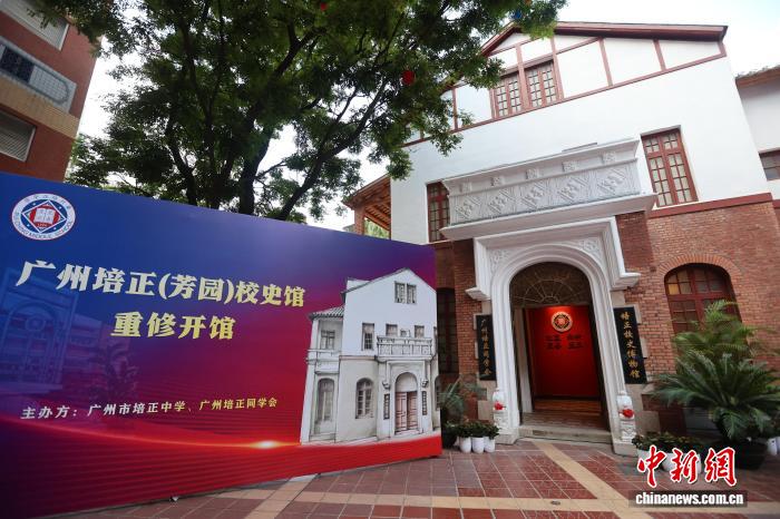中新网广州9月12日电 (蔡敏婕 王思瑶)红墙映古树,弦歌忆峥嵘。广州培正(芳园)校史馆重修开馆仪式12日在广州举行。此次重修历时一年,新增“抗战时期的培正”专题展区,多件与校史有关的文物和老照片,串联起培正从书院到现代化学校的历程。