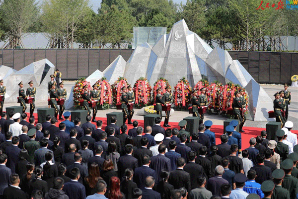 9月13日上午,第十二批在韩中国人民志愿军烈士遗骸安葬仪式在沈阳抗美援朝烈士陵园举行。(海外网 王陈逍遥/摄)