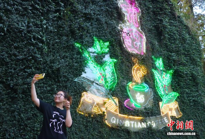 10月4日,浙江青田,游客在“青田咖啡”艺术装置前手举咖啡拍照。中新社记者 周健 摄